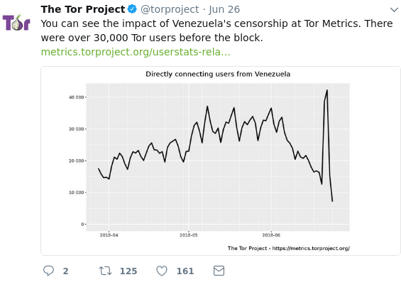 My issue isn't with the censorship between the Tor Project and Venezuela. Rather, my issue is with the metrics. How do they know how many people use Tor and where they are located? The answer is: some Tor nodes are run by researchers. They collect metrics about who connects to them and report it to the Tor Project. This is explicitly tracking.