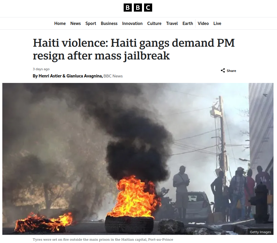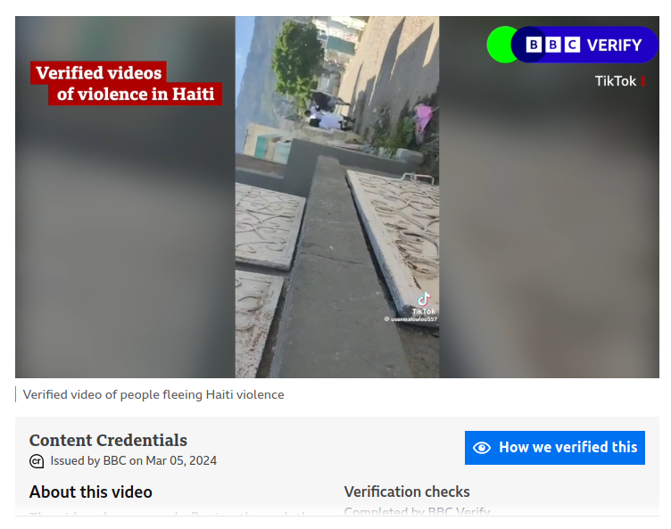 The news article that "bots don't cry" references is at the BBC, titled "Haiti violence: Haiti gangs demand PM resign after mass jailbreak". The story is dated "3 days ago". (As I write this, it is March 7th, so that would be March 4th.)Halfway down the article is the video labeled, "Verified video of people fleeing Haiti violence." On the video itself are two different notations saying it has been verified.