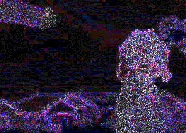 Second, ELA should identify similar 8x8, 16x16, etc. blocks as PCA; for low quality images, ELA identifies the chrominance subsampling. And this is a problem. The subsampling should be the same across the entire image. However, the sky clearly shows 16x8 subsampling (scaled to fit 7x3 grids). However, the house only has square subsampling (either 8x8 or 16x16 scaled to 7x7; you can easily see them on the roof). With the dog and the jets, I don't see the subsampling grid. This means that the image must be made from four separate components: sky, house, jets, and dog.